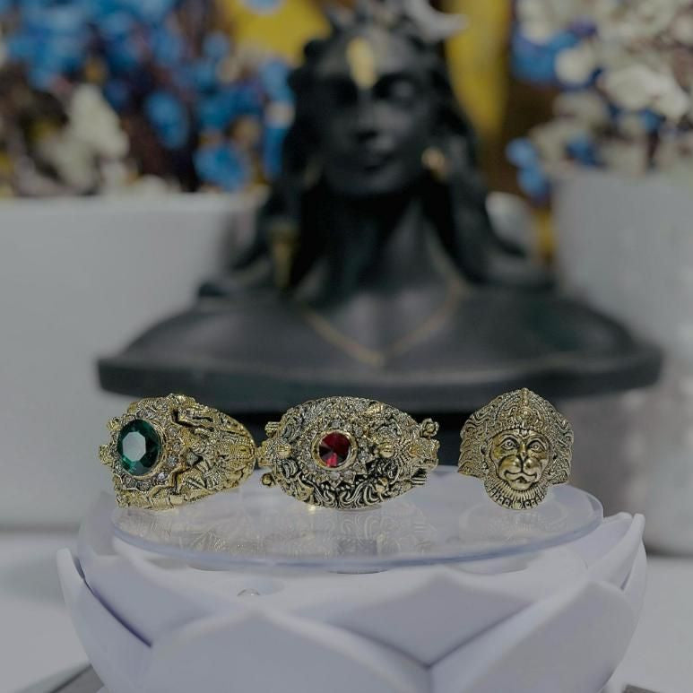 Religious Ring of Shivji Ganeshji & Hanumanji Combo of 3
